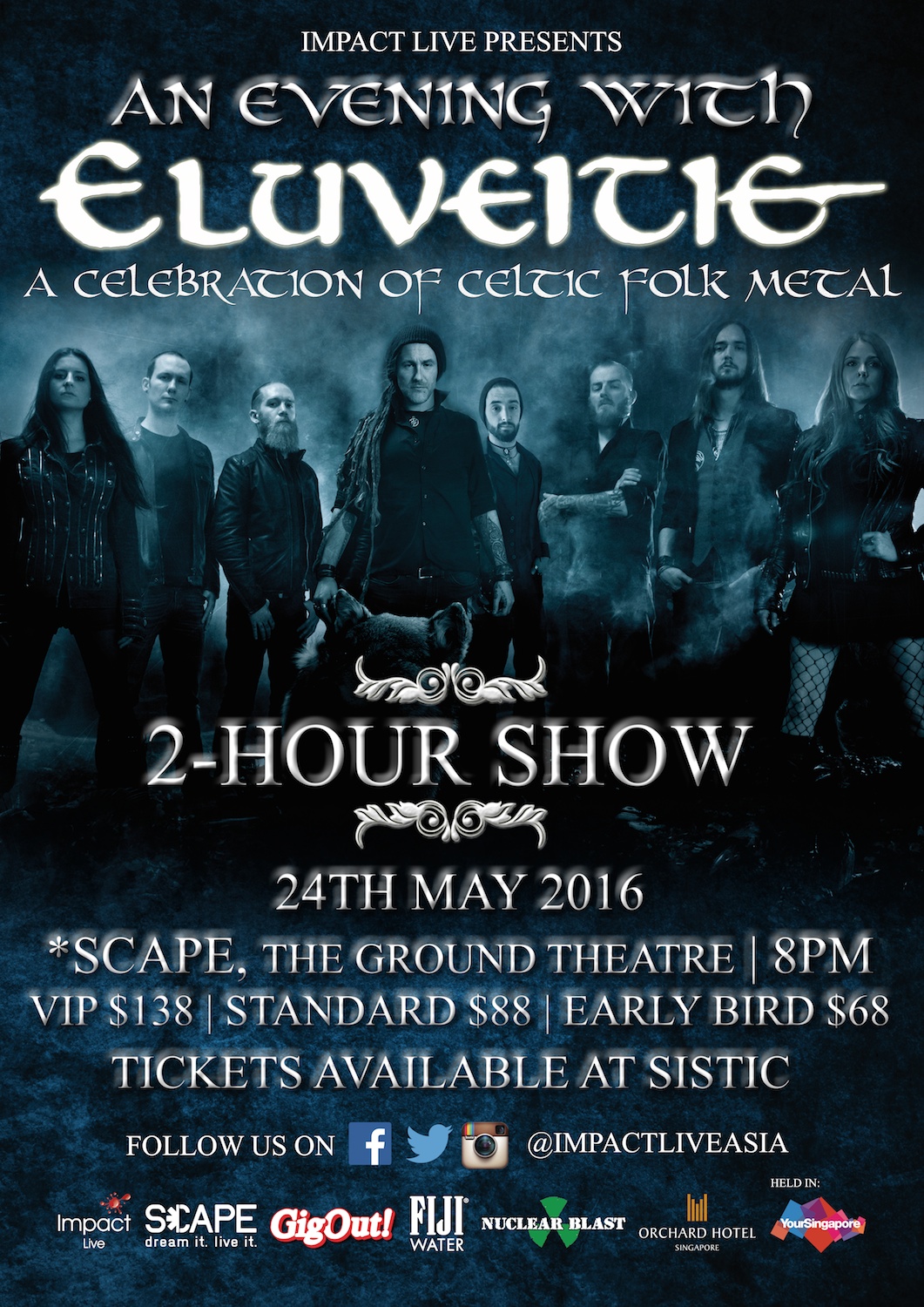 Khabar angin kedatangan Raja Folk Metal ini tiba tidak lama selepas persembahan Nightwish di Singapura berakhir dengan hint oleh Impact Live dalam bentuk undi di page mereka. Pengumuman rasmi dibuat sekitar Februari menamatkan segala khabar angin dan mengesahkan kehadiran Eluveitie di rantau Asia Tenggara pada 24 Mei 2016 dengan persembahan selama 2 jam dengan sesi akustik.