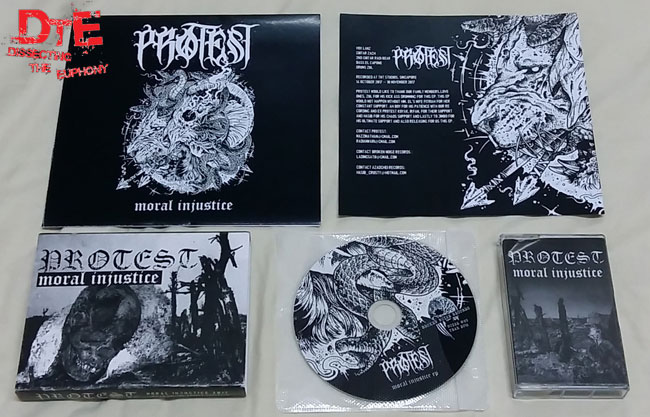 Protest bukan 1 nama baru dalam dunia Punk/Crust amnya di Asia tenggara. Band yang berasal dari Singapore ini telah wujud sejak 90an dan secara mukadimahnya telah menghasilkan 2 buah demo tape iaitu Take Back Your Life dan The Biggest Proof Of Human Greed Is War. Disamping itu Protest juga pernah terlibat dalam sebuah 3 ways split bertajuk Remember Those Noises bersama Desecrate dan Hatred Jackals. Agak lama menghilang kini Protest kembali bersama material terbaru dan yang paling menarik, mereka juga kembali menghangatkan pentas2 gig. Moral Injustice asalnya dikeluarkan dalam format double-tape (beserta demo The Biggest Proof Of Human Greed Is War) oleh Broken Noise Records dan Azadghei Records. Tidak lama selepas double tape ini dijual, kedua2 label mengeluarkan pula dalam format CD dalam kuantiti limited iaitu 100 copies sahaja.