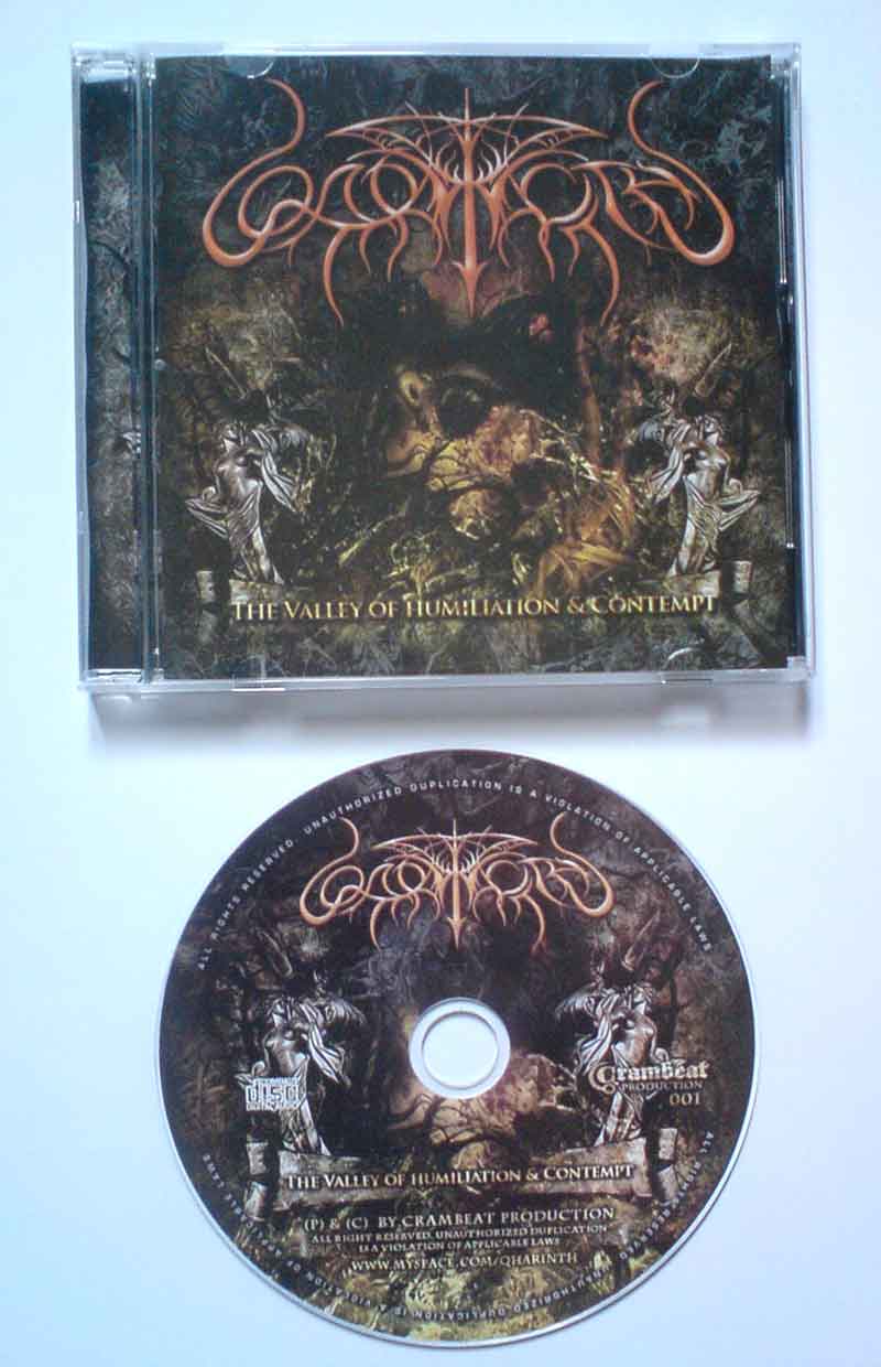 Ok, sebenarnya dah lama CD ni berada dalam tangan gua dan amat kerap kali berkumandangan menjadi santapan gegendang telinga gua.. rasa nya gua dapat cd ni setelah 2hari ianya rilis.. ok berbalik kepada EP yang bertajuk “The Valley Of Humiliation & Contempt” ini anda akan di sajikan dengan irama Symphomospheric Black Death Metal (Symphomospheric tu merujuk kepada Symphonic + Atmospheric). Jika anda pendengar Hecate Enthroned dan Dimmu Borgir, pasti anda terkejut dgn hasil garapan muzik Qharinth.